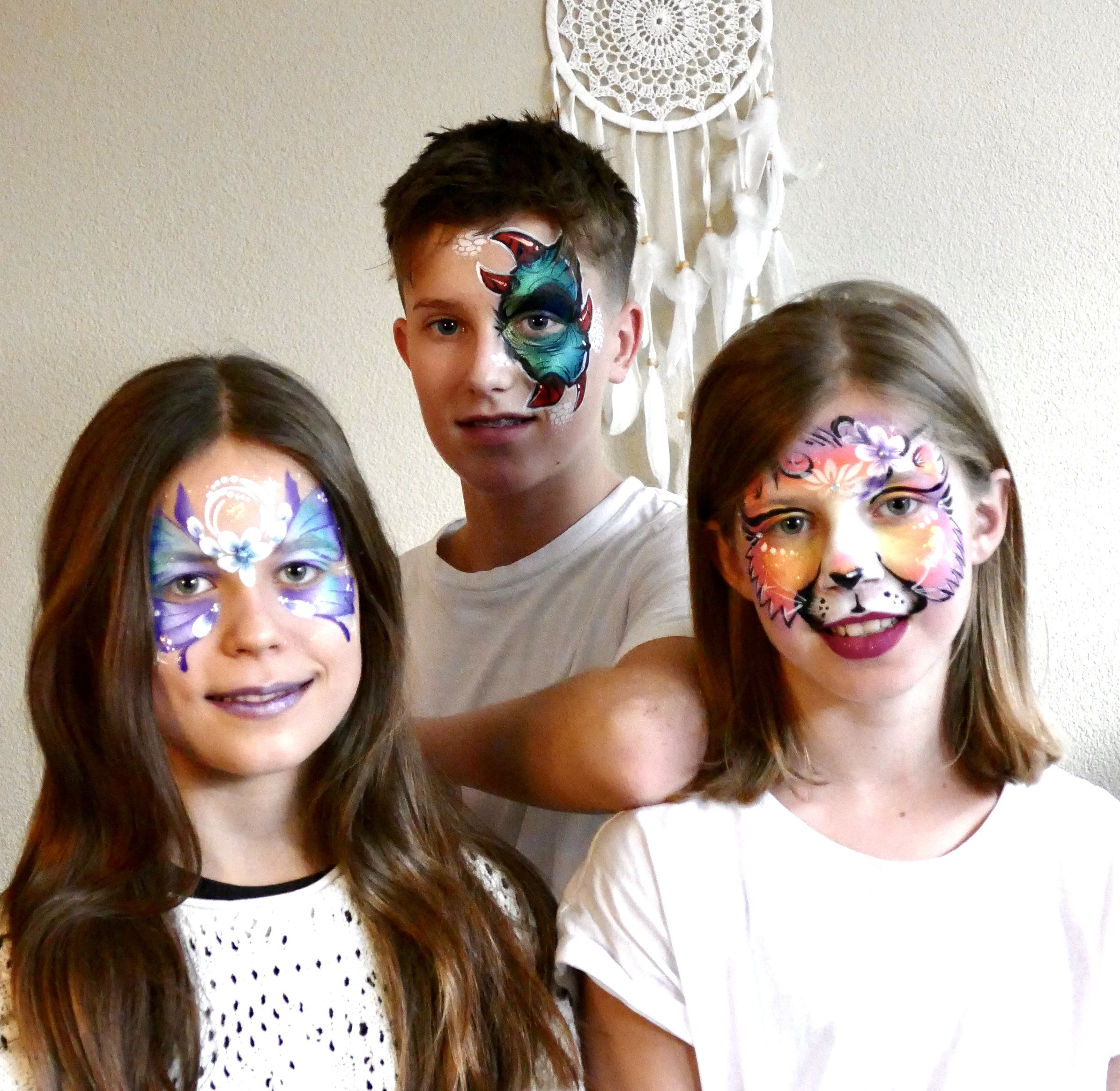 Es werden nur hochwertige und gut hautverträgliche Qualität an Schminkfarben auf Wasserbasis verwendet.