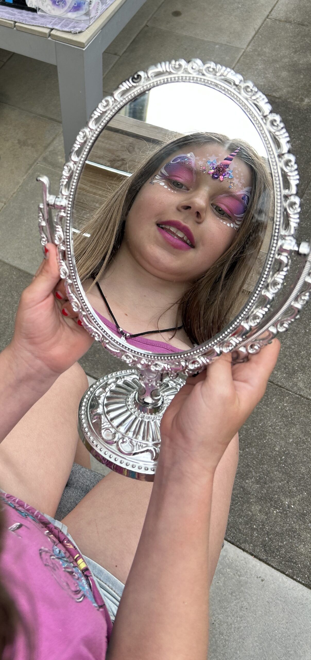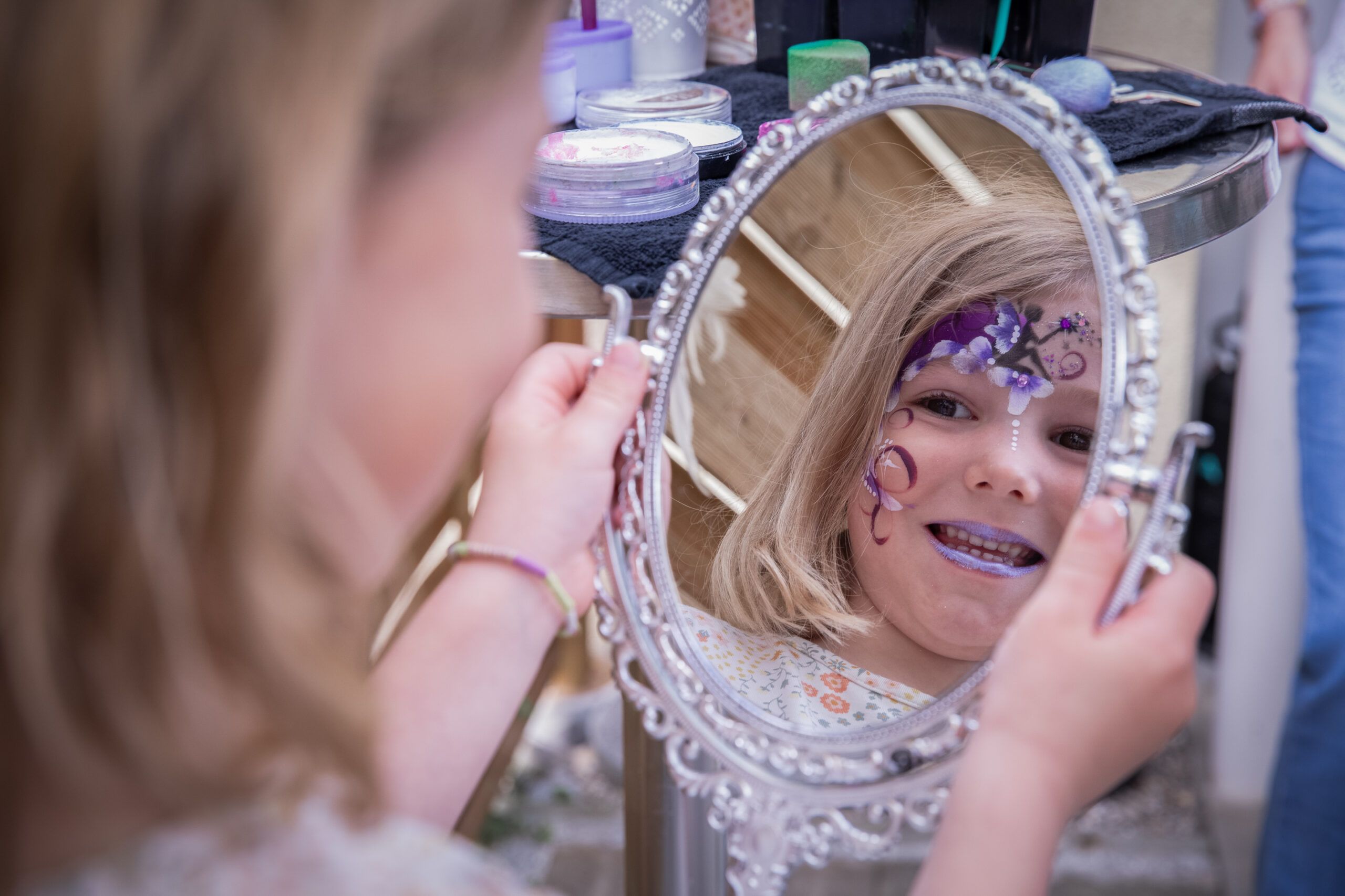 Trotzdem können in seltenen Fällen alle Kosmetika allergische Reaktionen auslösen. Es liegt im Ermessen der erwachsenen Begleitperson, ob das Kind geschminkt werden darf.