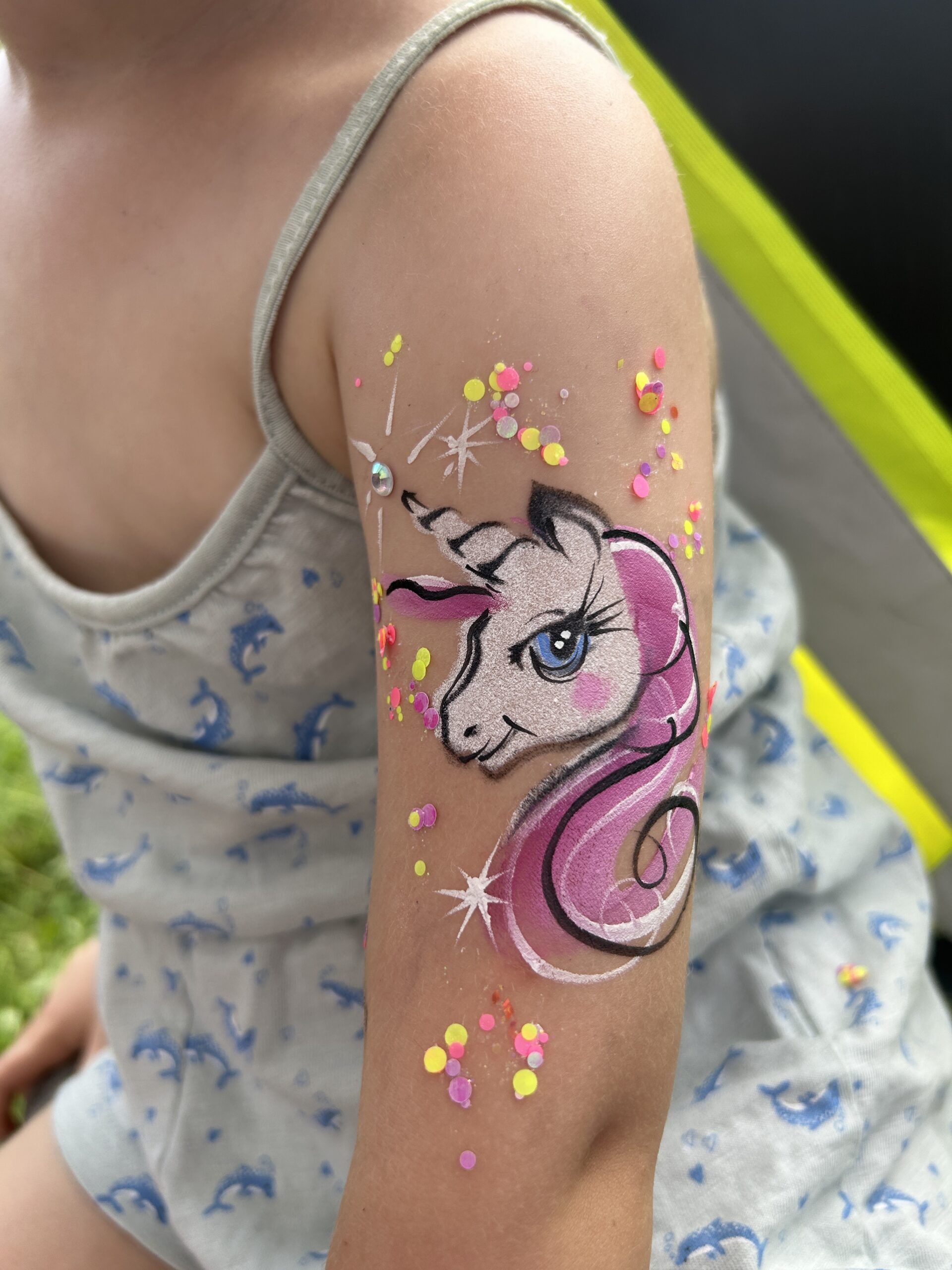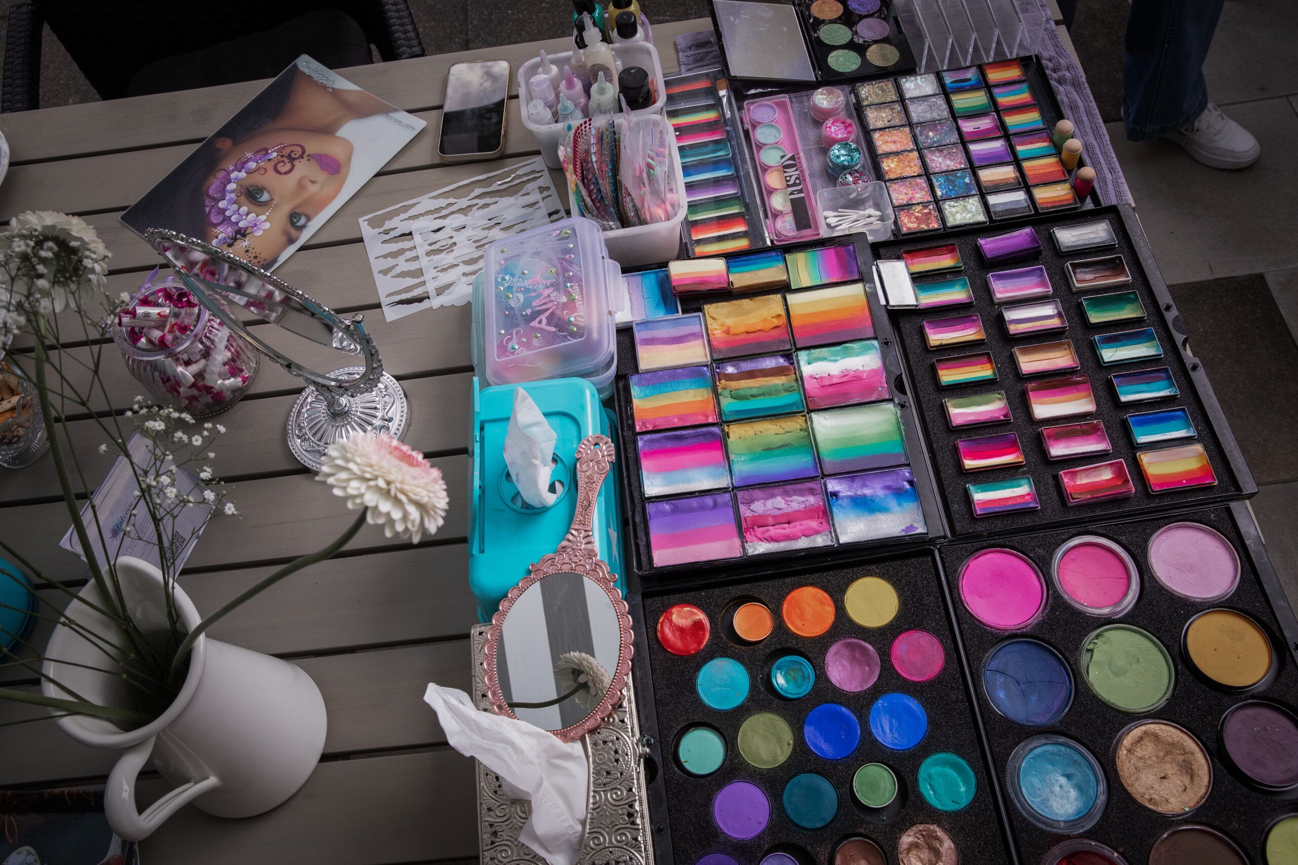 Es werden nur hochwertige und gut hautverträgliche Qualität an Schminkfarben auf Wasserbasis verwendet.